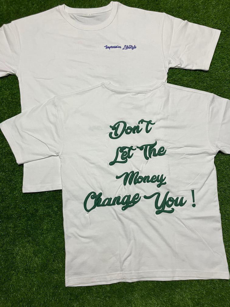 If you're in search of a top-quality T-shirt, look no further than our 3D Puff Design. It features a one-of-a-kind phrase on the back and our brand name elegantly embroidered on the front.